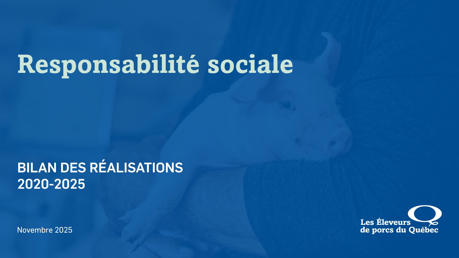 Des nouvelles de l'organisationLes Éleveurs de porcs du Québec sont fiers de présenter leur bilan 2020-2025 en Responsabilité sociale des organisations (RSO). Cette démarche a été amorcée il y a plus de dix ans pour intégrer des préoccupations sociales, environnementales, économiques et éthiques dans la filière porcine.