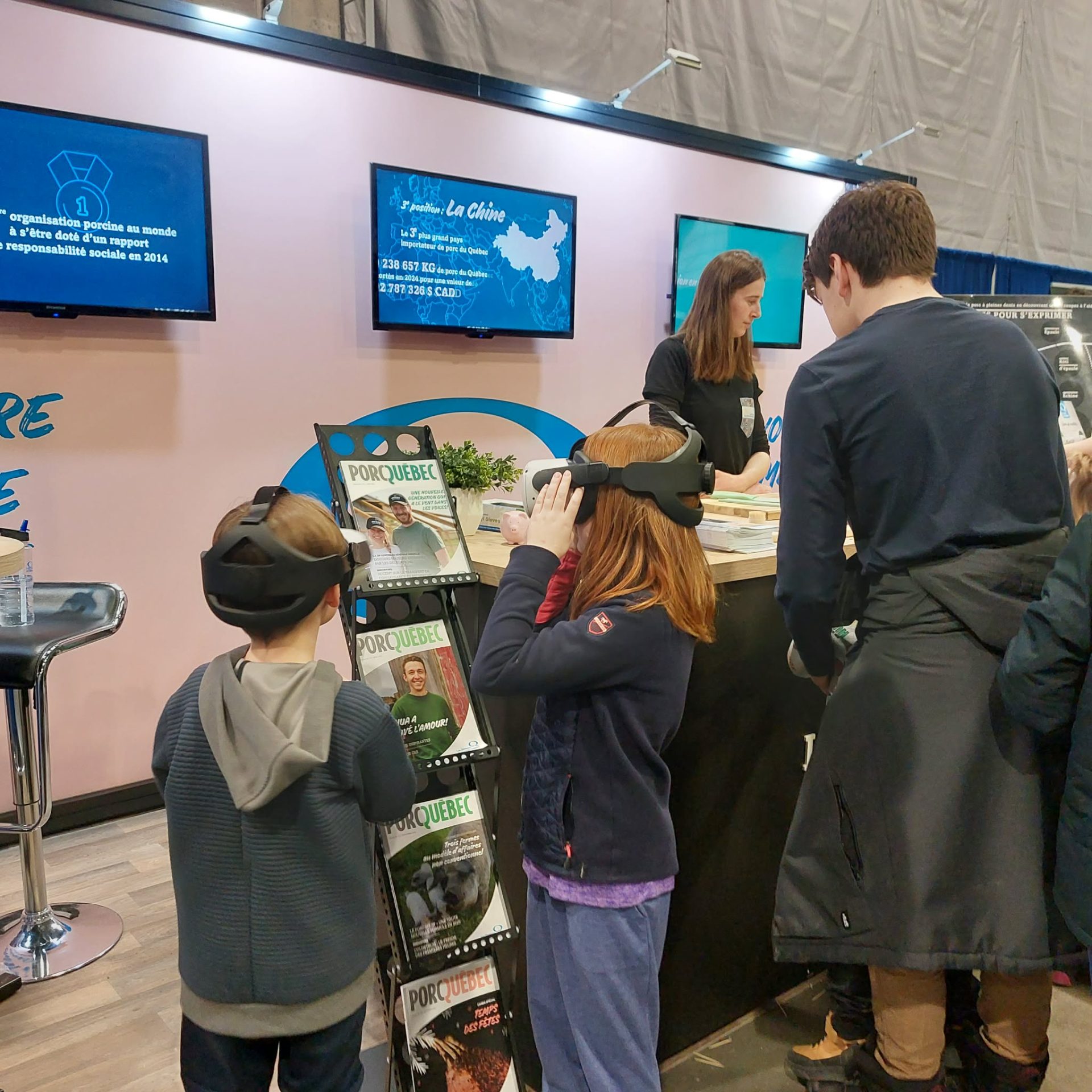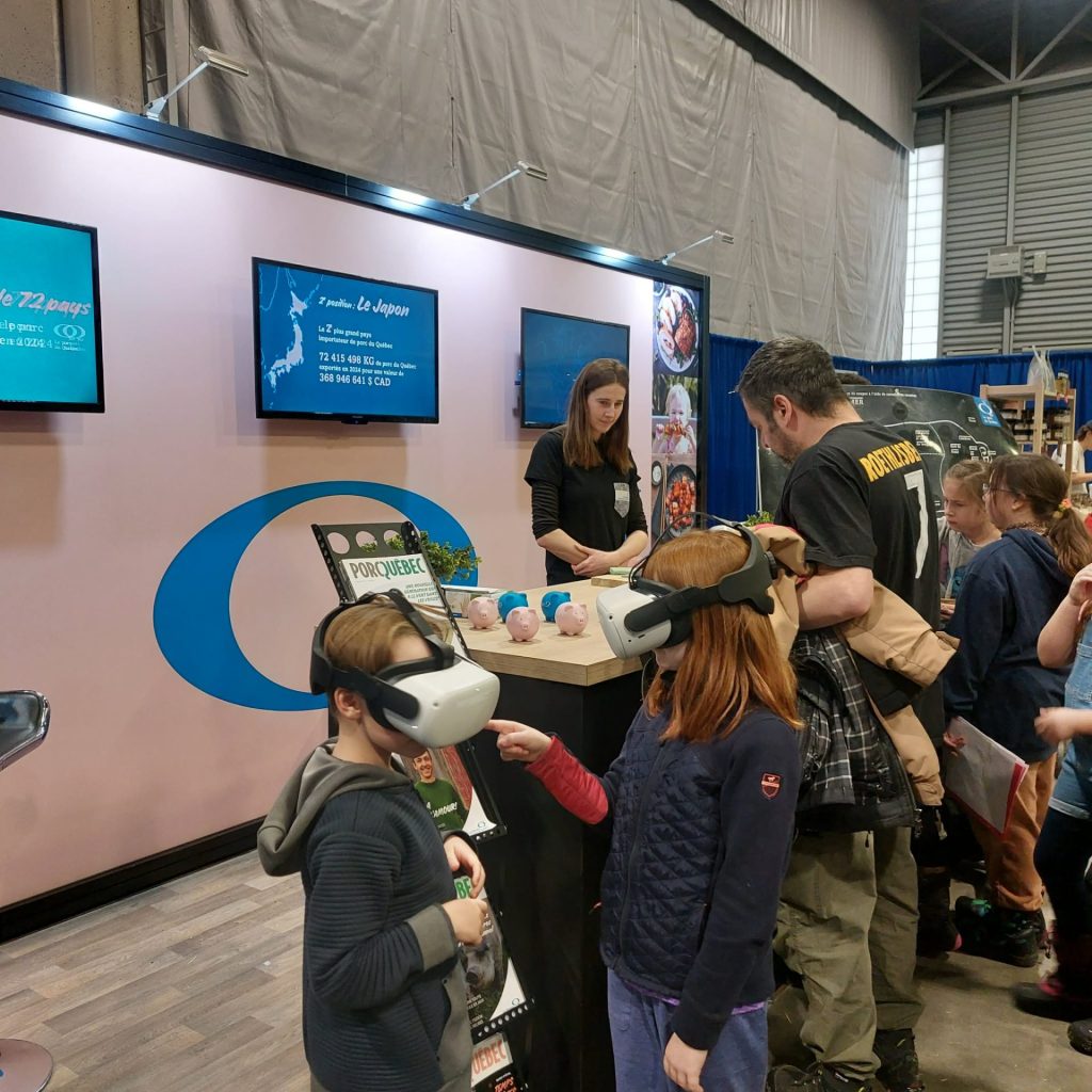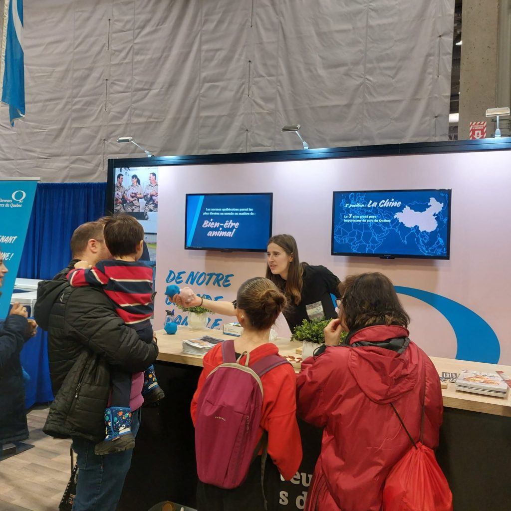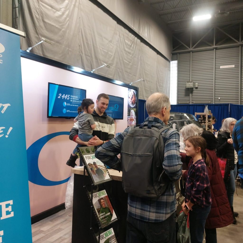 Tout au long du salon, le kiosque a permis de belles rencontres avec des familles, des étudiant.e.s, des membres de la relève et des consommateurs et consommatrices curieux d’en apprendre davantage sur la production porcine québécoise.