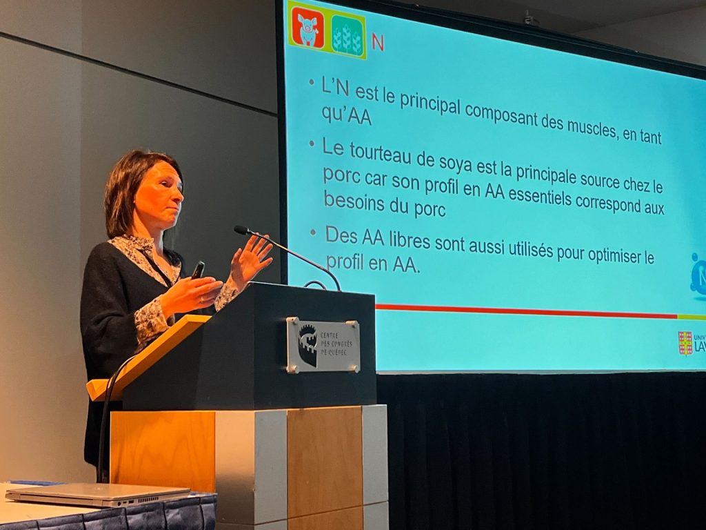 - Marie-Pierre Létourneau-Montminy, professeure en sciences animales à l’Université Laval, a fait part des stratégies visant à optimiser l’utilisation du phosphore et de l’azote afin de réduire l’empreinte environnementale et les émissions de GES de la production porcine canadienne.